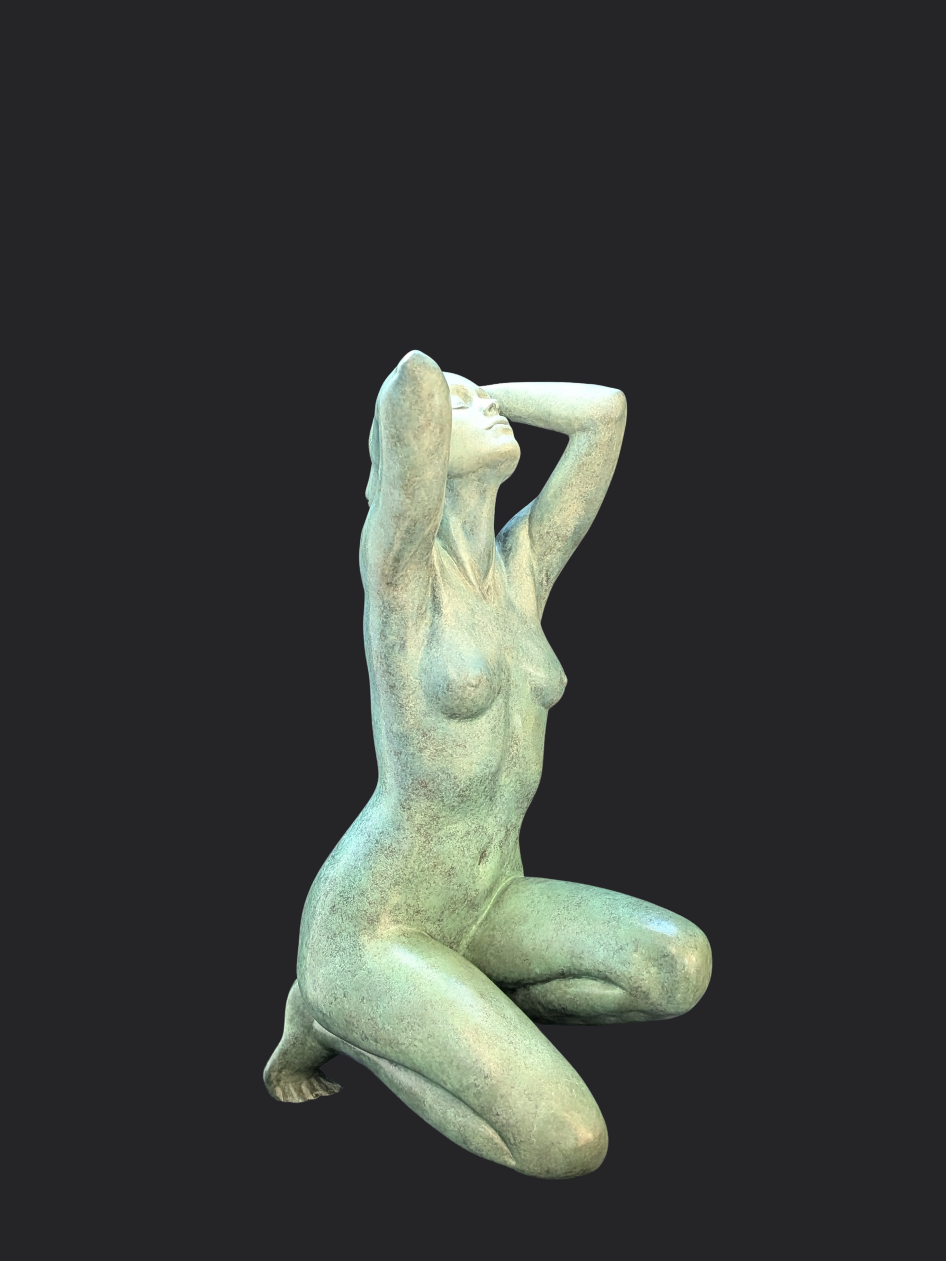 Son œuvre sculpturale, principalement composée de nus féminins modelés en argile puis transposés en bronze, interroge la matière comme un processus de transformation continue. Le corps n’y est jamais figé : il est saisi dans un instant de tension, d’équilibre instable, où une force invisible semble encore l’animer. Chaque posture traduit un dialogue constant entre construction et destruction, élan et retenue, intériorité et extériorité.
